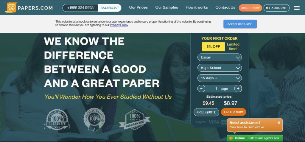 99papers.com is another essay writing service that helps the customers with complete essay writing assistance. The website is known for providing quality work at economical and affordable rates. The website also claims to help the students by having a qualified and dedicated team of writers who are capable of meeting the quality standards and providing customised work to the students. However, a different picture is analysed from a close lens view.