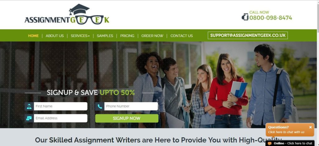 Assignmentgeek.co.uk is another essay writing service that helps the customers with complete essay writing assistance. The website is known for providing quality work at economical and affordable rates. The website also claims to help the students by having a qualified and dedicated team of writers who are capable of meeting the quality standards and providing customised work to the students. However, a different picture is analysed from a close lens view.
