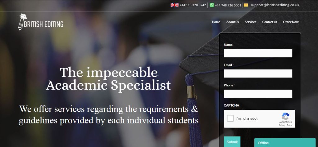 Britishediting.co.uk is essay writing service that helps the customers with complete essay writing assistance. The website is known for providing quality work at economical and affordable rates. The website also claims to help the students by having a qualified and dedicated team of writers who are capable of meeting the quality standards and providing customised work to the students. However, a different picture is analysed from a close lens view.