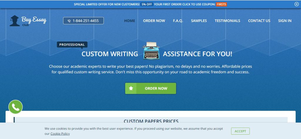 Buyessayclub.com is another essay writing service that helps the customers with complete essay writing assistance. The website is known for providing quality work at economical and affordable rates. The website also claims to help the students by having a qualified and dedicated team of writers who are capable of meeting the quality standards and providing customised work to the students. However, a different picture is analysed from a close lens view.