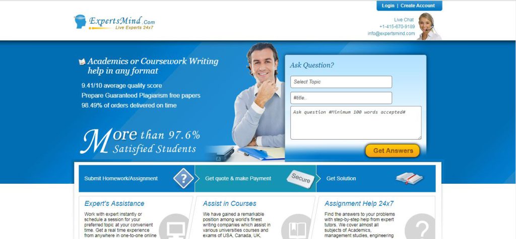 Expertsmind.com is an online essay writing service for students of schools and colleges. However, this company is not reliable for students. When I used this service for my school assignment I came to know the reality of this site.
