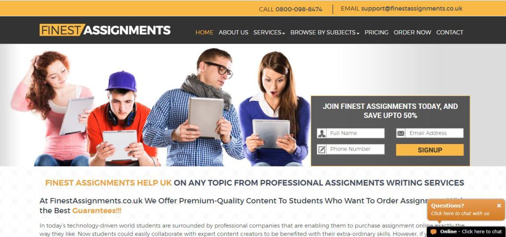 Finestassignments.co.uk is another essay writing service that helps the customers with complete essay writing assistance. The website is known for providing quality work at economical and affordable rates. The website also claims to help the students by having a qualified and dedicated team of writers who are capable of meeting the quality standards and providing customised work to the students. However, a different picture is analysed from a close lens view.