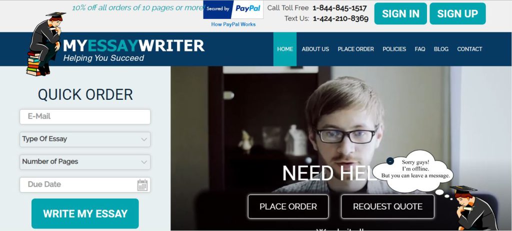 Myessaywriter.net is another essay writing service that helps the customers with complete essay writing assistance. The website is known for providing quality work at economical and affordable rates. The website also claims to help the students by having a qualified and dedicated team of writers who are capable of meeting the quality standards and providing customised work to the students. Today we are going to review them on different criteria’s for you.