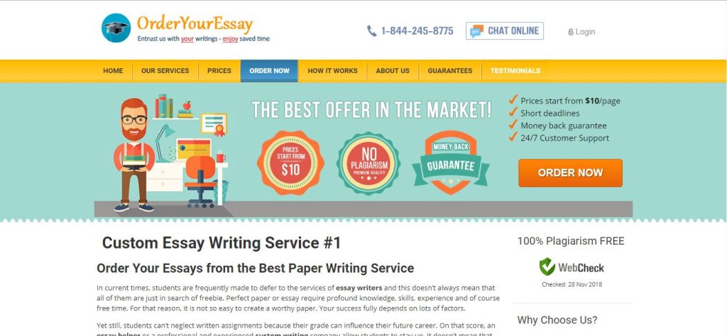 Orderyouressay.com claim to understand the importance of top notch papers to achieve academic success but the authenticity of that is not revealed in the quality of work they produce. After getting money from most of their customer, they end up providing poor services to them. That’s all they have got to offer since most of their writers are learners.