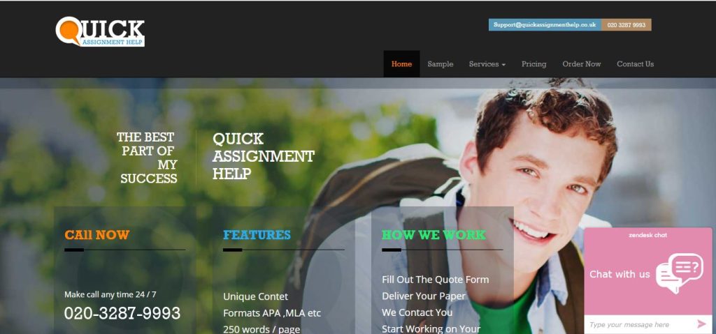 Quickassignmenthelp.co.uk is relatively a new company in the field of project market. It mainly target students of UK from secondary to graduate levels to provide them essay, research paper, thesis and other such projects. We reviewed the company on the parameters of trust, content quality, writers, pricing, customer support and plagiarism. We evaluated all aspects of the company to ensure that the students decide wisely before dealing with Quickassignmenthelp.co.uk.
