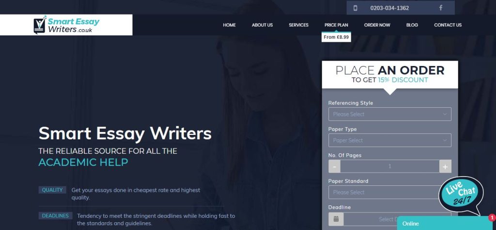 Smartessaywriters.co.uk is another essay writing service that helps the customers with complete essay writing assistance. The website is known for providing quality work at economical and affordable rates. The website also claims to help the students by having a qualified and dedicated team of writers who are capable of meeting the quality standards and providing customised work to the students. However, a different picture is analysed from a close lens view.