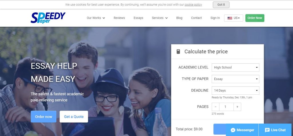 Speedypaper.com offers writing services that are not up to the standard that students might be looking for. The essays are not proofread before submission making them unreliable. Also, their customer services executives are difficult to reach out in case you need revision or refund. It is best to avoid Speedypaper.com if you want to save your money and get high grades on your essays.