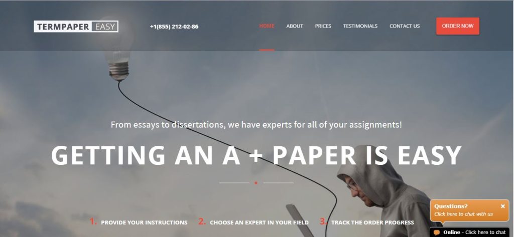 Termpapereasy will offer you high quality content in just few dollars. You may get a false perspective of having their service in cheap rates but believe or not you are going to dig a deep grave for your professional or academic reputation. You will be treated with a dish of waste material full of plagiarism in highly expensive budget. We care for you, don’t go for this service at all.