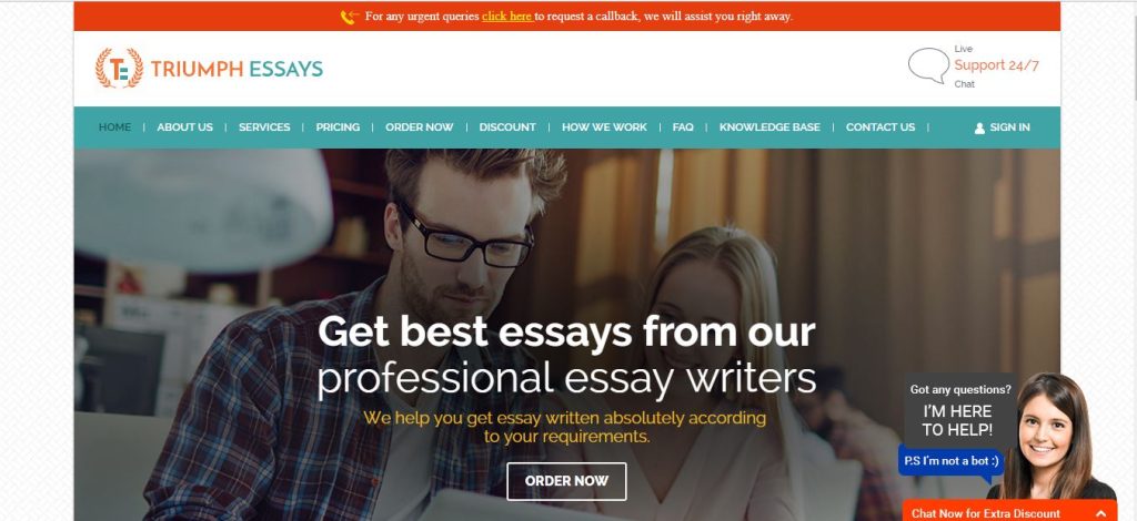 Triumphessays.com doesn’t seem to be ding that badly when it comes to customer service. They even have an option for a live chat included on their website. The only drawback you will encounter with the department of customer service is when it comes to a refund. In a case the work delivered does not meet your expectations, the chances of being refunded are minimal if not none.